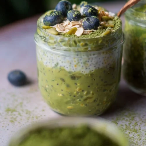 Serve your Matcha Overnight Oats in a bowl or a jar. You can add toppings like fresh fruit, nuts, seeds, or granola for extra texture and flavor. This makes your breakfast not only healthy but also visually appealing.